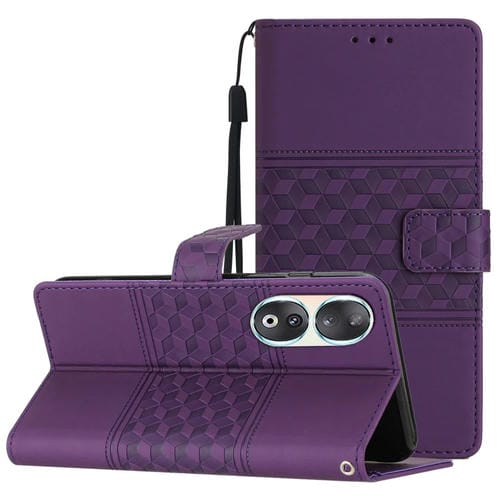 Funda de Cuero para Honor 90 con Sensación de Piel y Relieve de Diamantes (Púrpura)