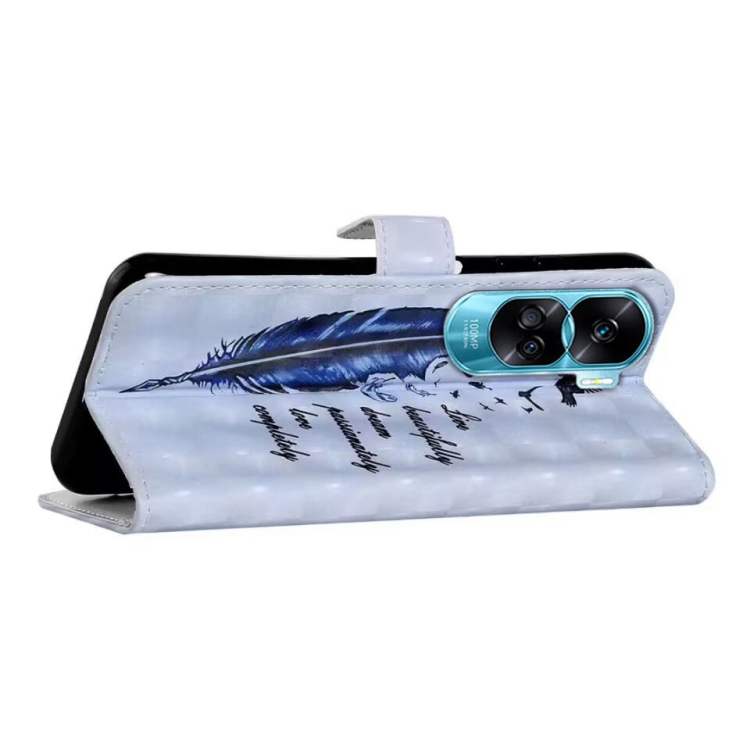 Funda para Honor 90 Lite de Cuero con Dibujo 3D en Relieve al Óleo (Pluma Azul)