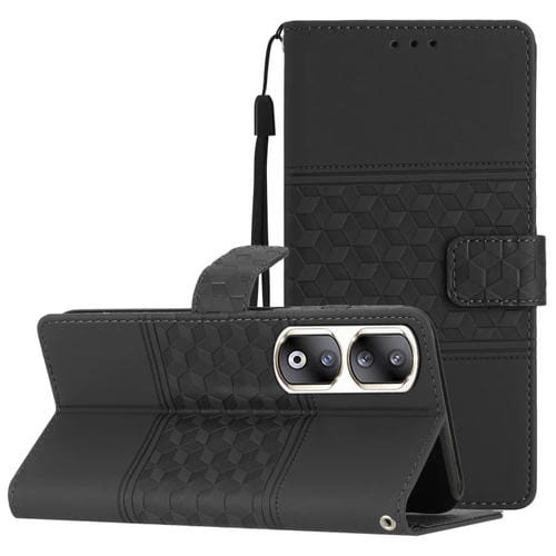 Funda de Cuero para Honor 90 Pro con Sensación de Piel en Relieve de Diamante (Negro)