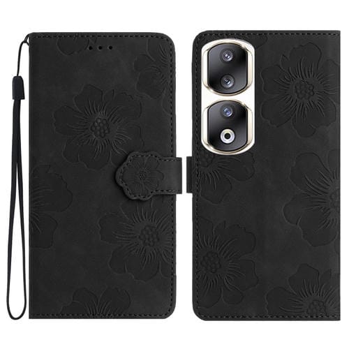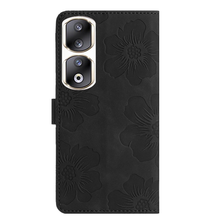 Funda de Cuero para Honor 90 Pro con Estampado de Flores (Negro)