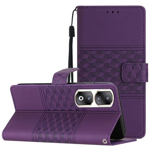 Funda de Cuero para Honor 90 Pro con Sensación de Piel en Relieve de Diamante (Púrpura)