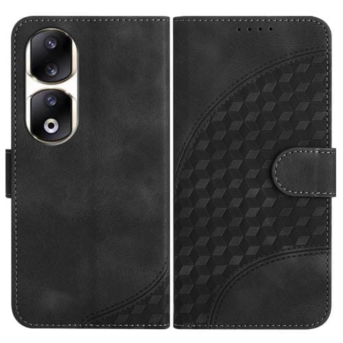 Funda de Cuero para Honor 90 Pro Yx0060 con Relieve y Cabeza de Elefante con Cordón (Negro)