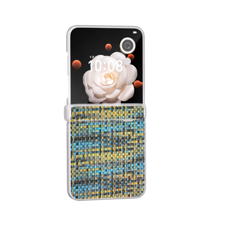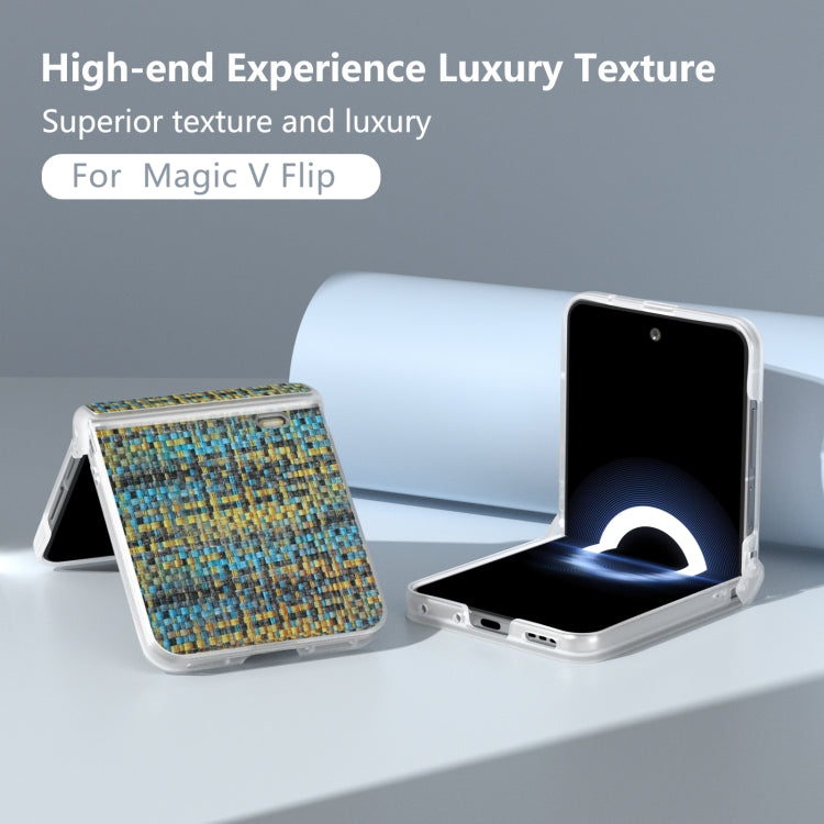 Estuche para Honor Magic V Flip de PU con Textura de Celosía y Marco Translúcido Esmerilado (Dorado)