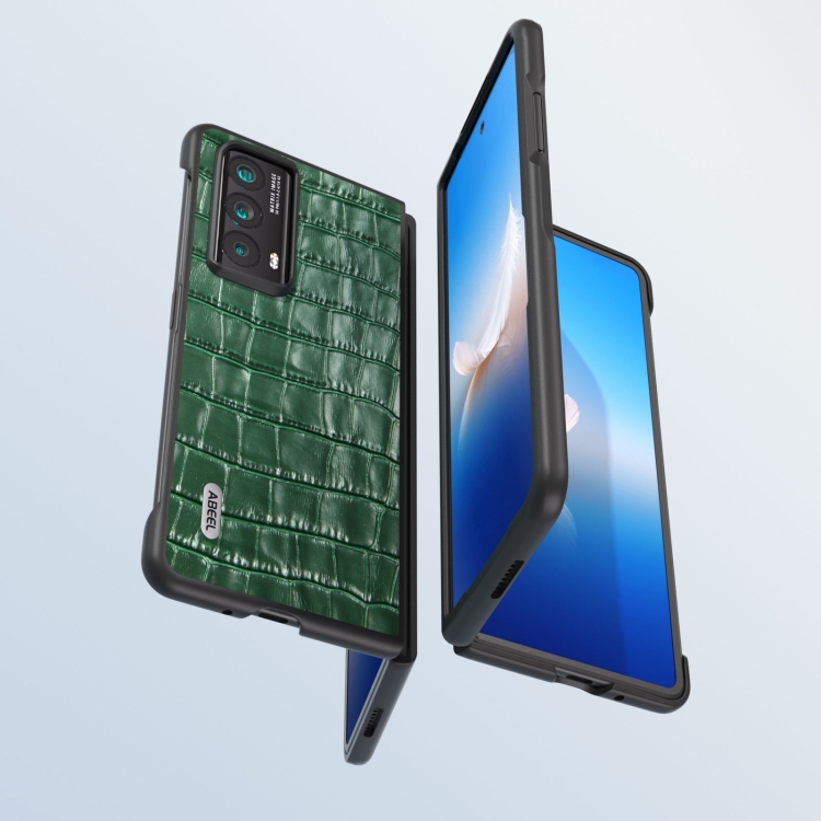 Funda para Honor Magic Vs2 Abeel de Cuero Genuino con Textura de Cocodrilo (Verde)