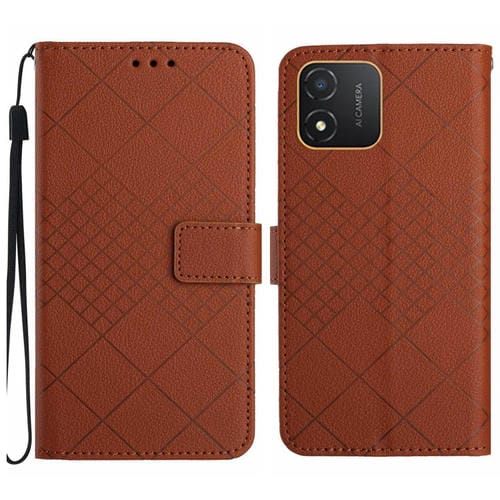 Funda para Honor X5 4G Cuero Textura Rejilla Rómbica (Marrón)