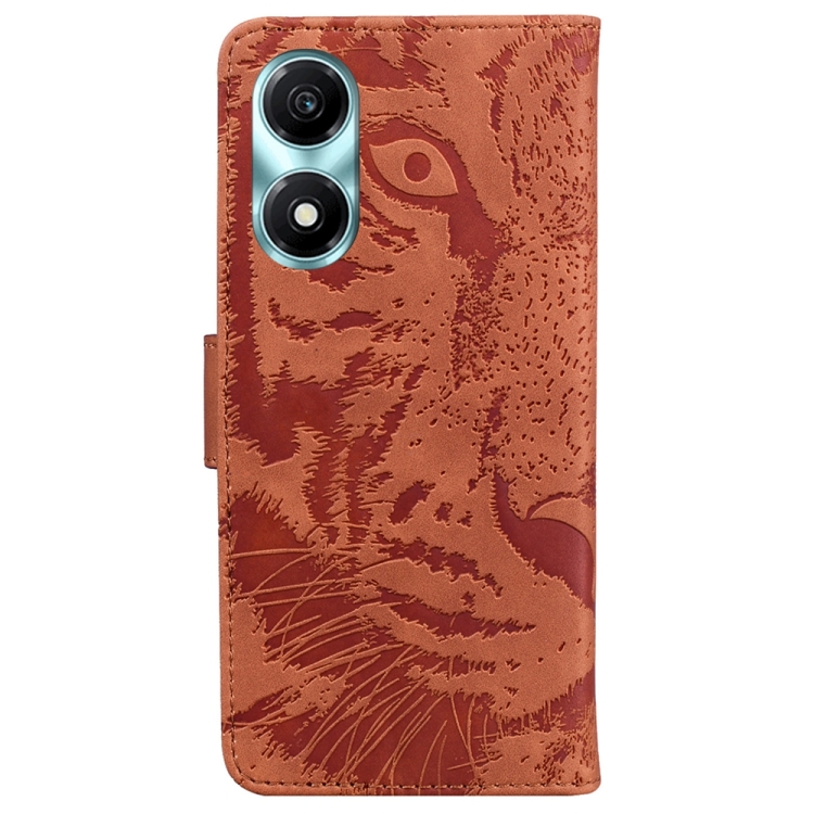 Funda para Honor X5 Plus y Play 40C de Cuero con Tapa y Patrón en Relieve de Tigre (Marrón)