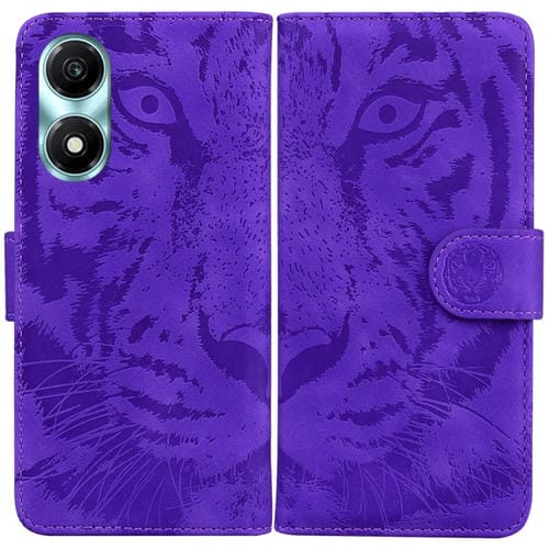 Funda para Honor X5 Plus y Play 40C de Cuero con Tapa y Patrón en Relieve de Tigre (Púrpura)