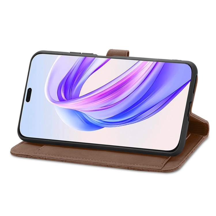 Funda para Honor X50I de Cuero con Cremallera y Flores en Relieve (Marrón)