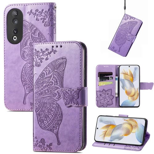 Funda para Honor X50I de Cuero con Relieve Flor de Amor y Mariposa (Lavanda)