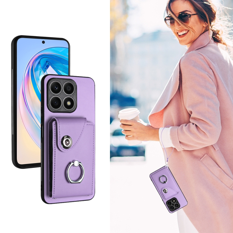 Funda para Honor X8A de PU con Soporte para Anillo y Bolsa para Tarjeta con Cordón (Púrpura)