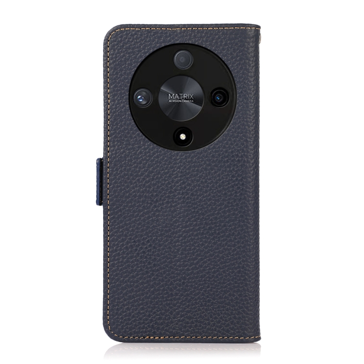Funda para Teléfono Honor X9B Khazneh Cuero Genuino Litchi con Lado Magnético (Azul)