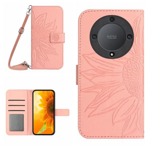 Funda de Cuero para Honor X9B Skin Feel con Cordón y Diseño Sun Flower (Rosa)