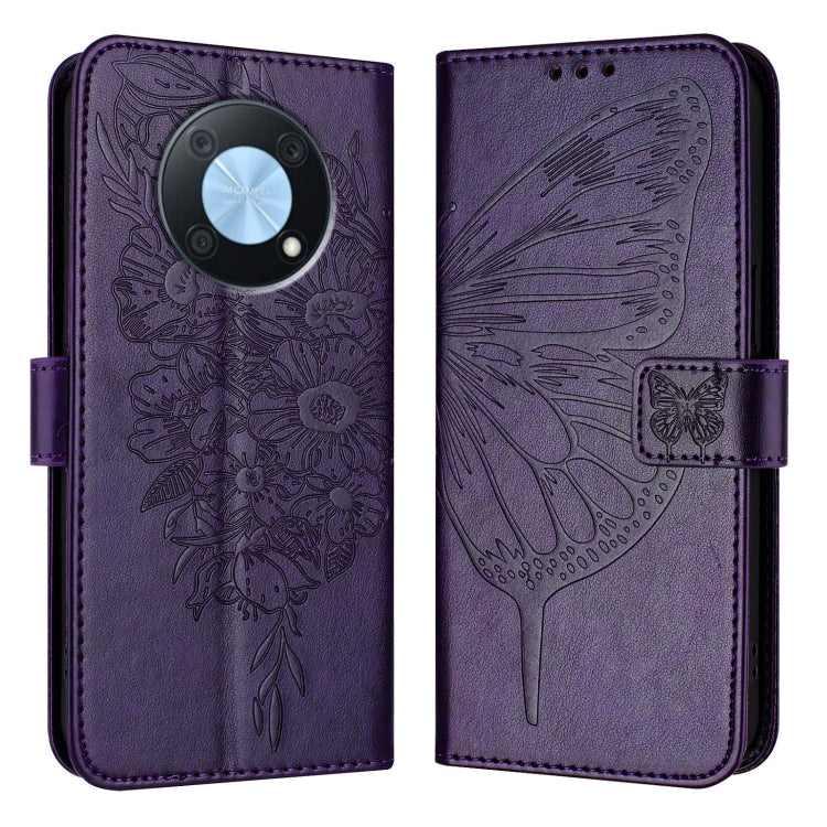 Funda de Cuero para Huawei Enjoy 50 Pro 4G y Nova Y90 con Mariposa en Relieve (Púrpura Oscuro)
