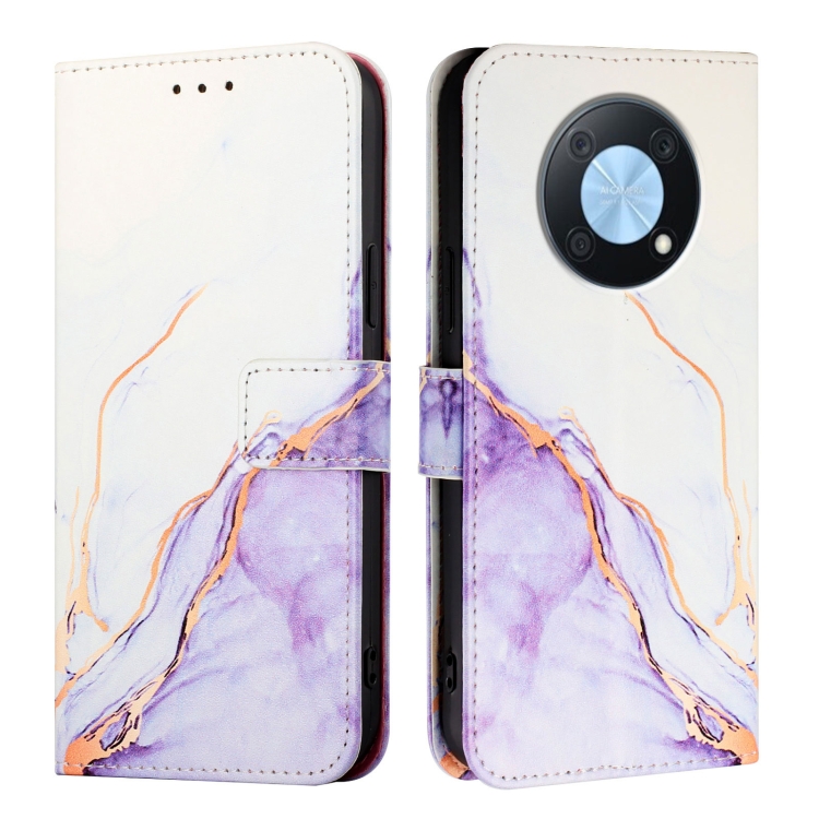- 1x Funda de Cuero con Tapa para Huawei Enjoy 50 Pro y Nova Y90 Pt003 con Patrón de Mármol (Blanco Púrpura)