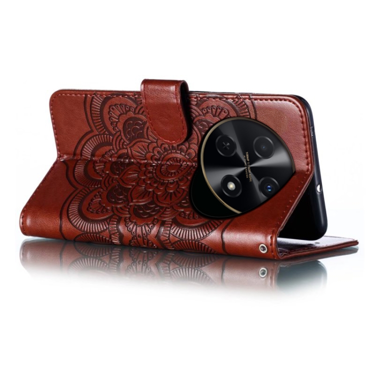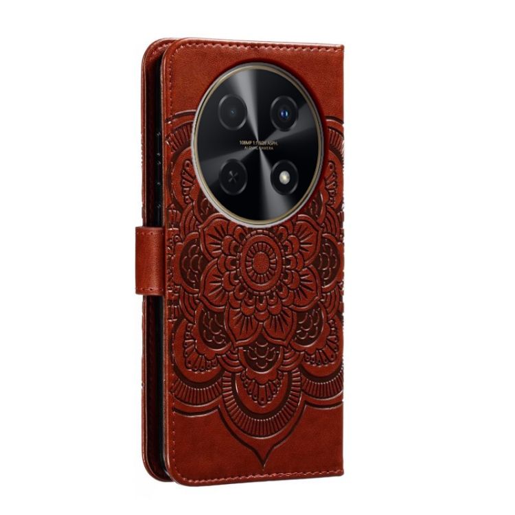 Funda de Cuero Huawei Enjoy 70 Pro con Patrón en Relieve Sun Mandala (Marrón)