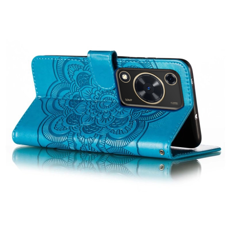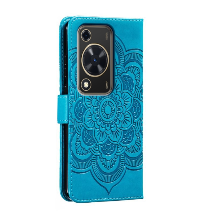 Funda de Cuero para Huawei Enjoy 70 con Patrón En Relieve Sun Mandala (Azul)