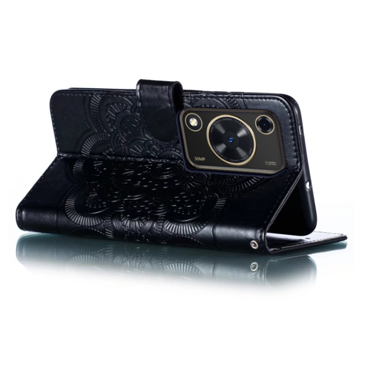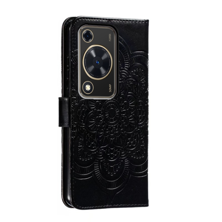 - 1x Funda de Cuero para Huawei Enjoy 70 con Patrón en Relieve Sun Mandala (Negro)