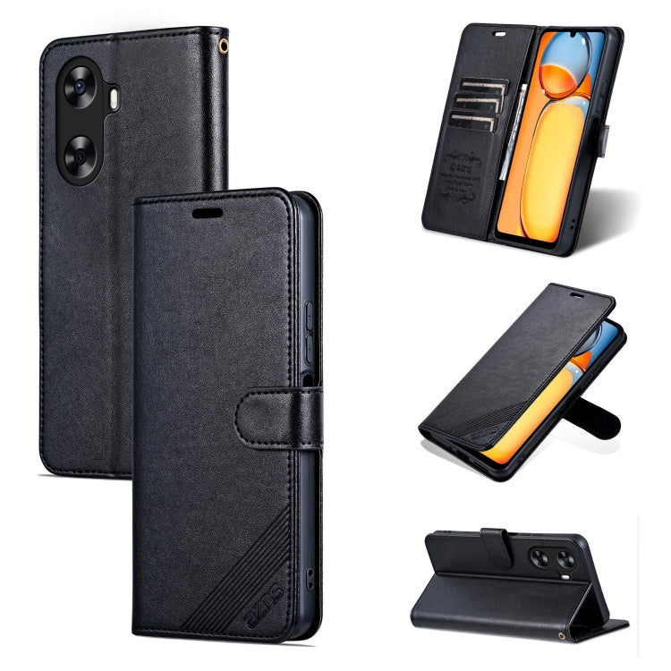 Funda de Cuero para Huawei Enjoy 70Z Azns con Tapa y Textura de Piel de Oveja (Negro)