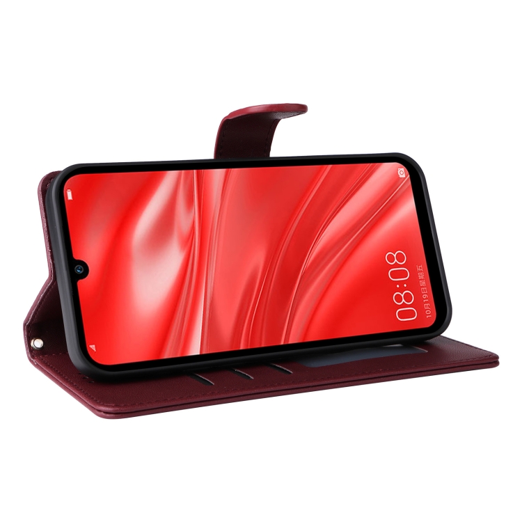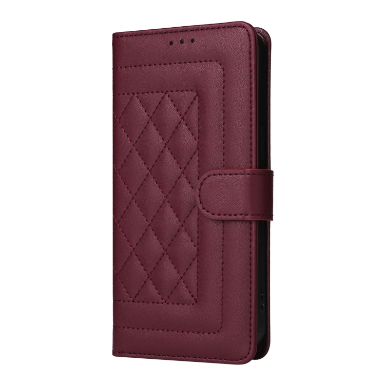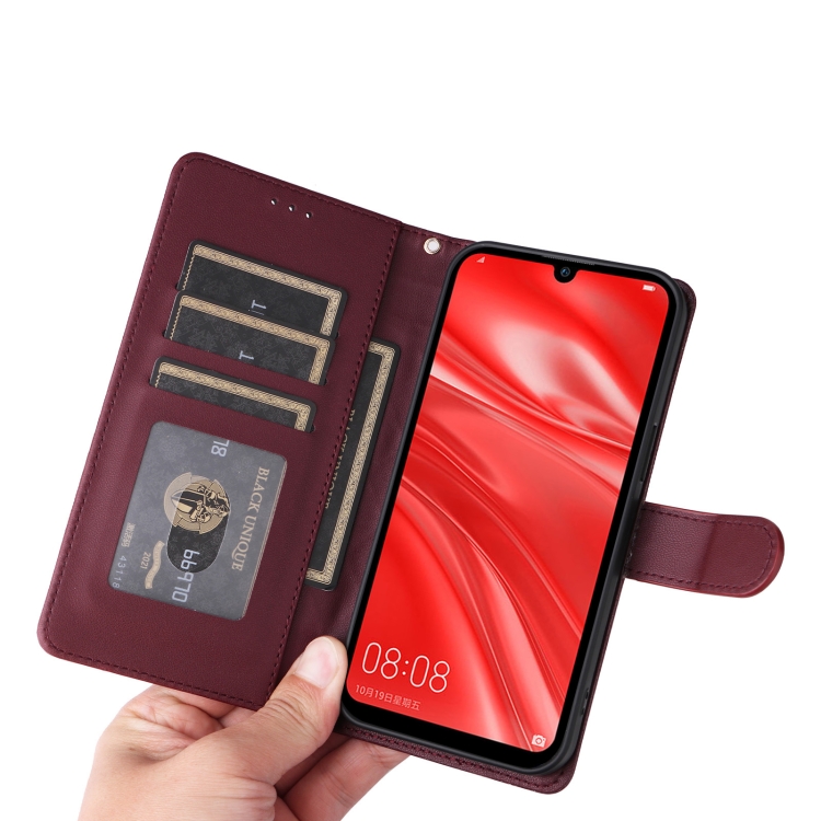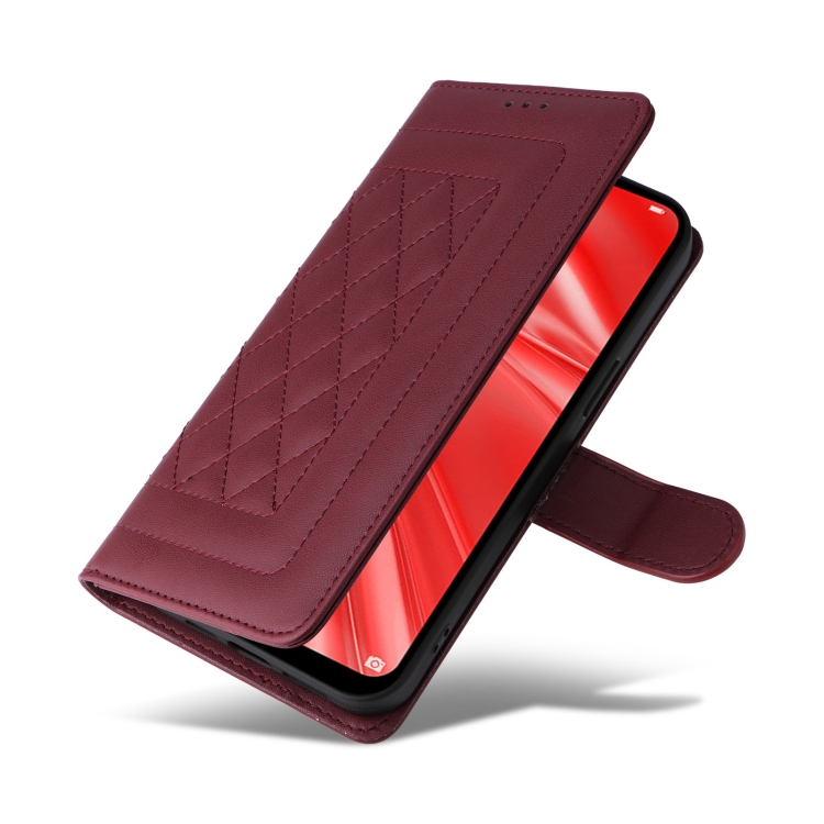Funda de Cuero con Tapa para Huawei Enjoy 9S Diamond Lattice (Rojo Vino)
