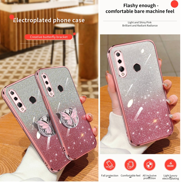 • 1x Funda TPU para Huawei Enjoy 9S con Soporte de Mariposa y Brillo Degradado (Negro)