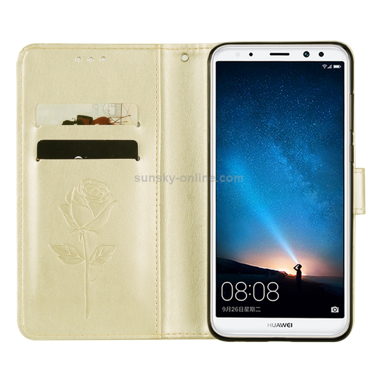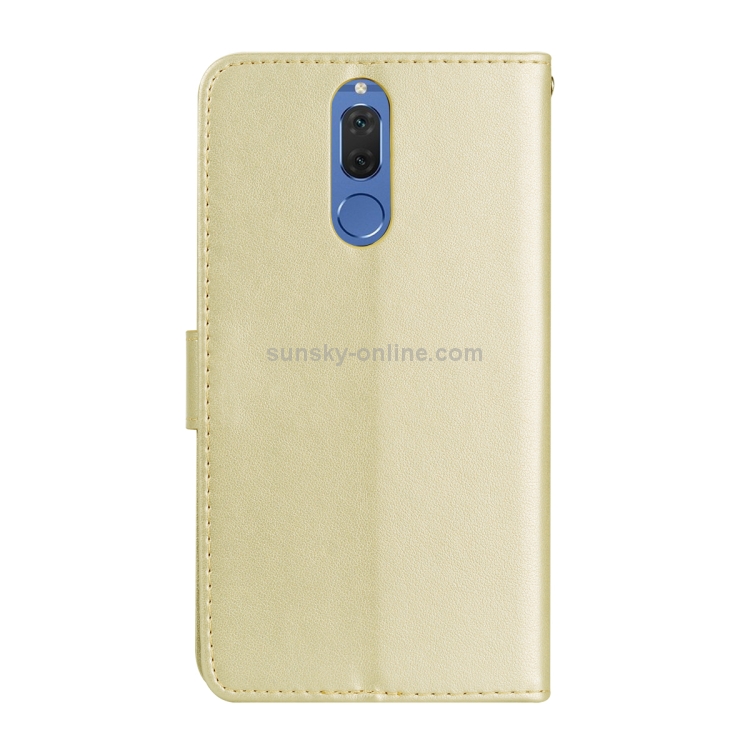 Funda Piel Sintética Huawei Mate 10 Lite con Tapa Horizontal, Soporte, Ranuras y Billetera (Dorado)