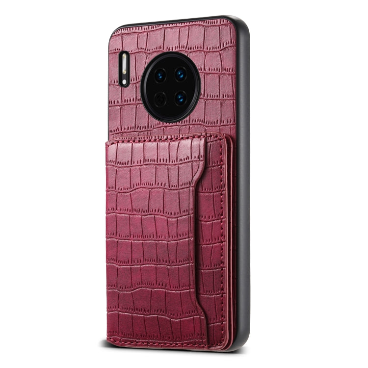 Funda para Huawei Mate 30 con Diseño de Bolsa para Tarjetas y Textura de Cocodrilo (Rojo)