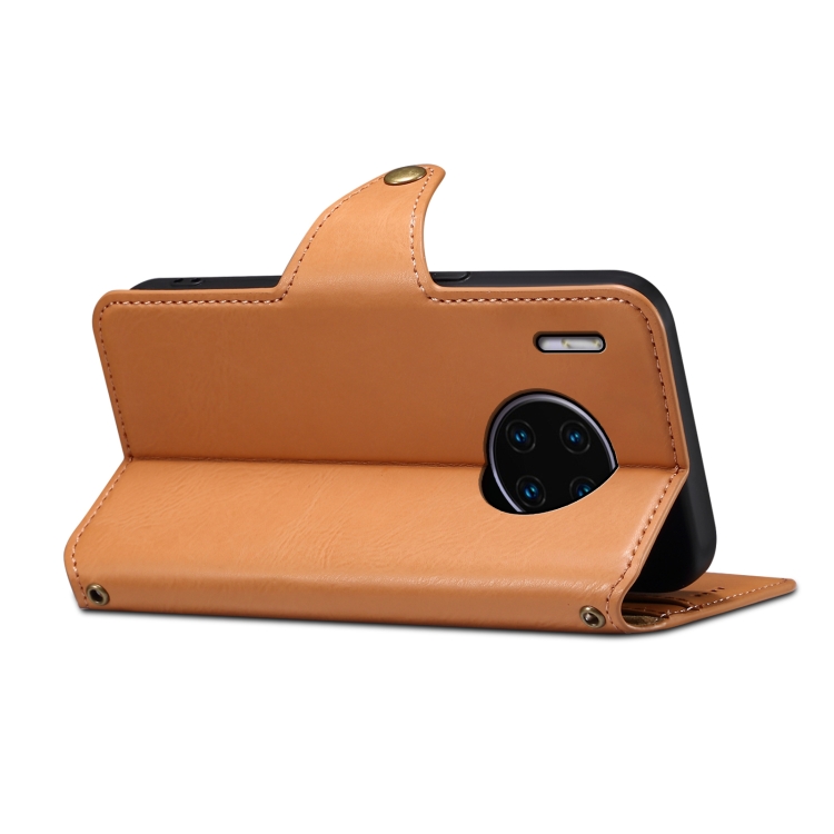 Funda para Huawei Mate 30 Pro Denior Cuero Estilo Billetera Textura Piel de Vaca (Caqui)
