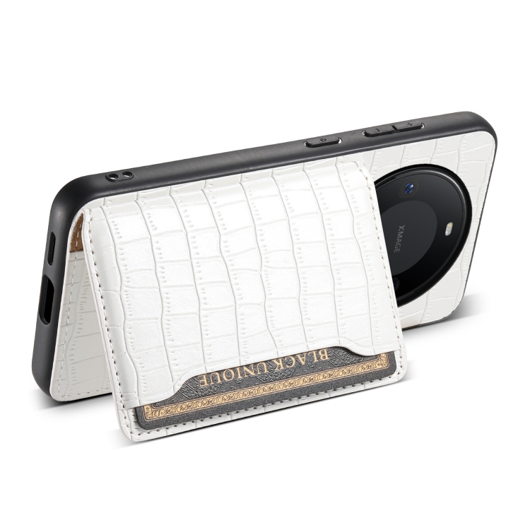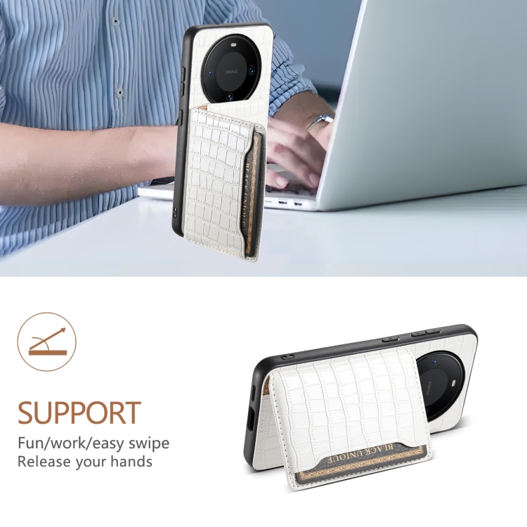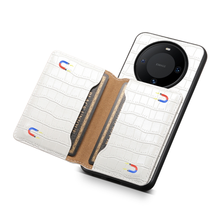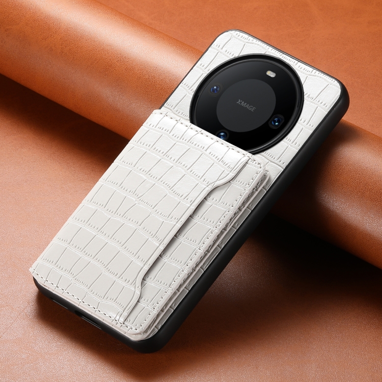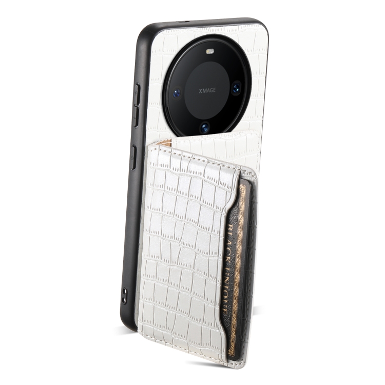 Estuche para Huawei Mate 60 con Diseño de Bolsa para Tarjetas y Textura de Cocodrilo (Blanco)