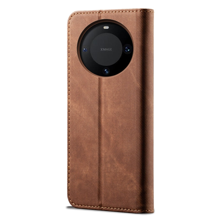 Funda de Cuero para Huawei Mate 60 Pro con Textura Vaquera (Marrón)