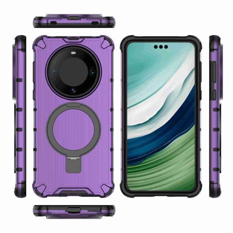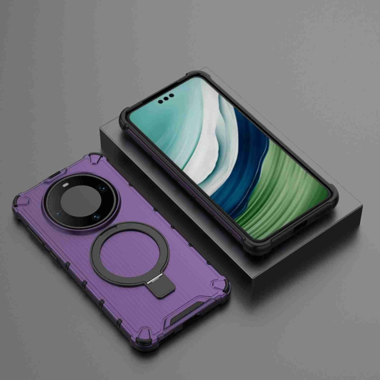 Funda para Huawei Mate 60 Pro con Soporte y Rejilla a Prueba de Golpes (Púrpura)