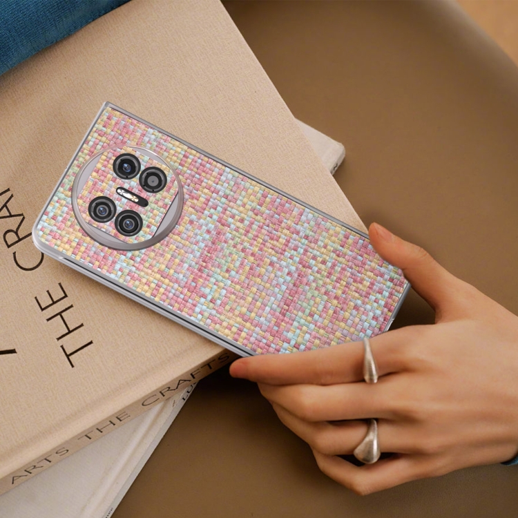 Funda para Huawei Mate X5 de PU con Marco Translúcido Esmerilado y Textura Rómbica (Rosa)