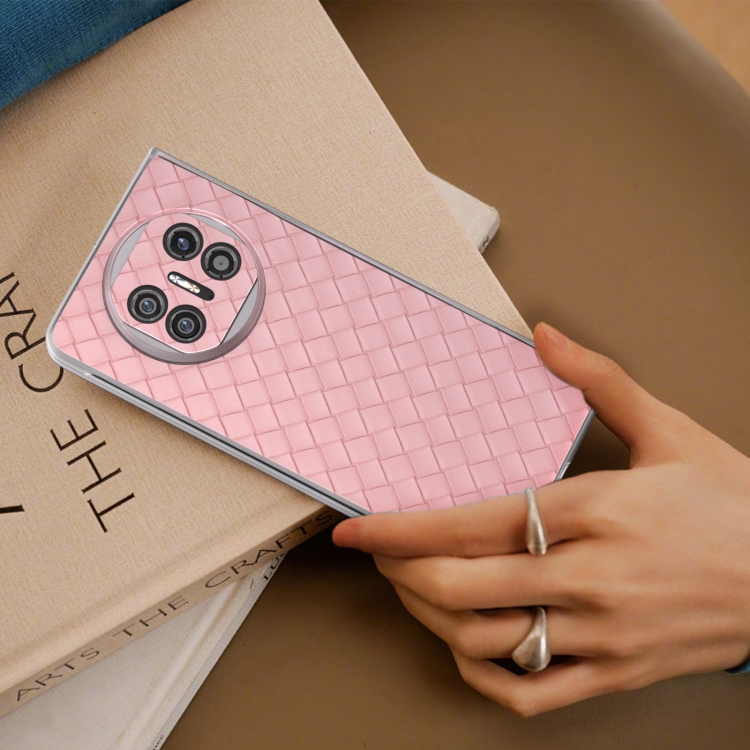 Funda para Huawei Mate X5 de PU con Marco Translúcido Esmerilado y Textura Tejida (Rosa)