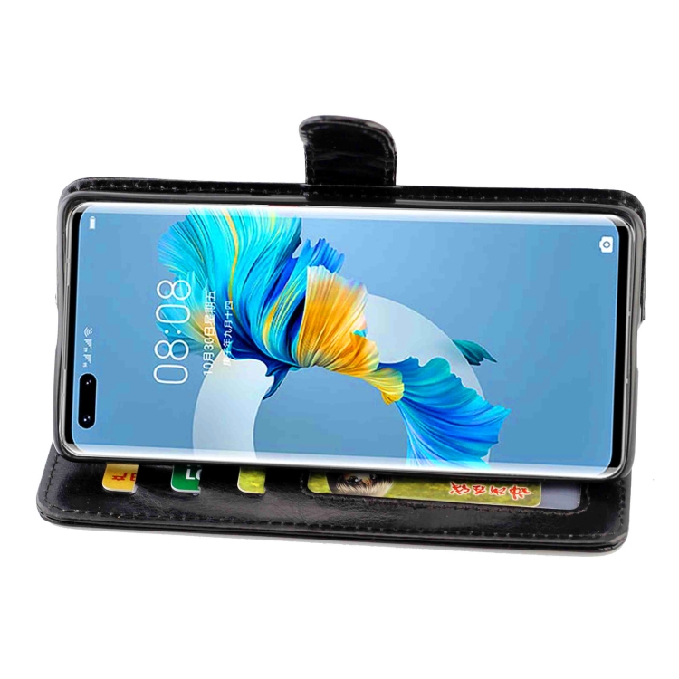 Para Huawei Mate40 Pro / Mate40 Pro + Funda protectora con tapa horizontal de cuero con textura de caballo loco con soporte, ranuras para tarjetas, billetera y marco de fotos (negro)