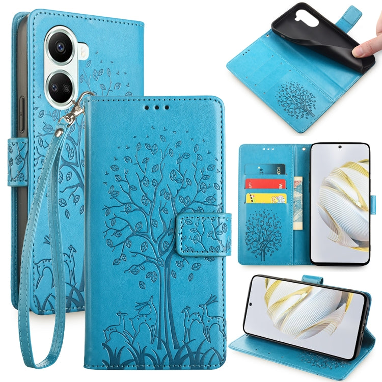 Funda para Huawei Nova 10 Se de Cuero con Relieve de Árbol y Ciervo (Azul)