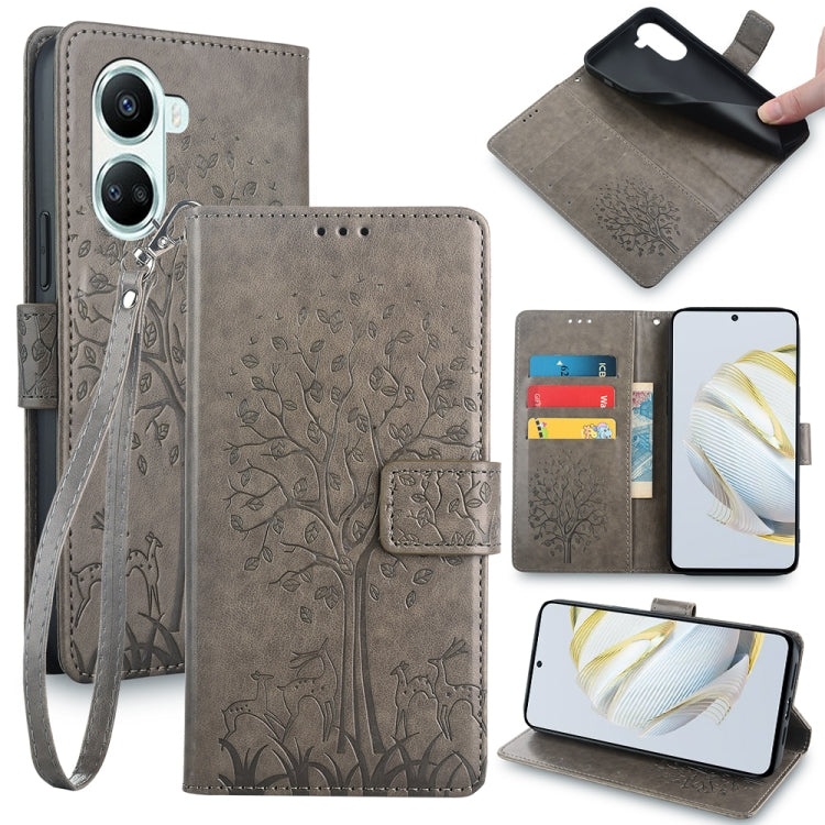 Funda para Huawei Nova 10 Se de Cuero con Relieve de Árbol y Ciervo (Gris)