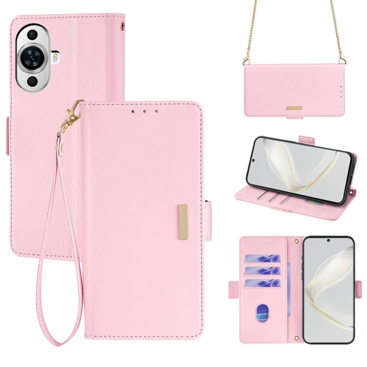 Funda de Cuero para Huawei Nova 11 4G con Cadena Cruzada (Rosa)