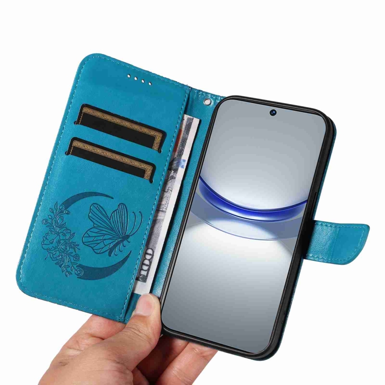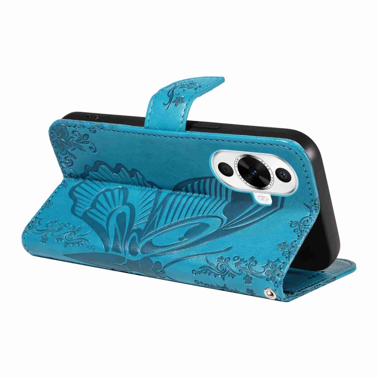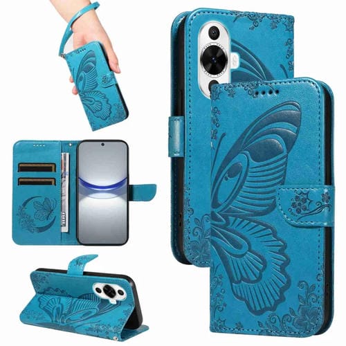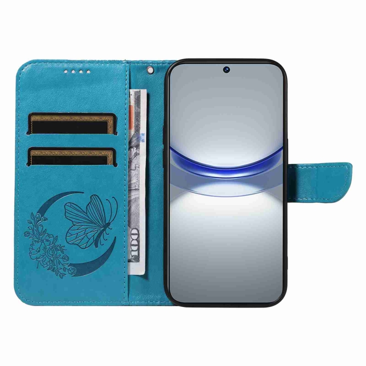 - 1x Funda para Huawei Nova 11 5G y 12S 4G de Cuero con Relieve Mariposa y Cola de Golondrina (Azul)