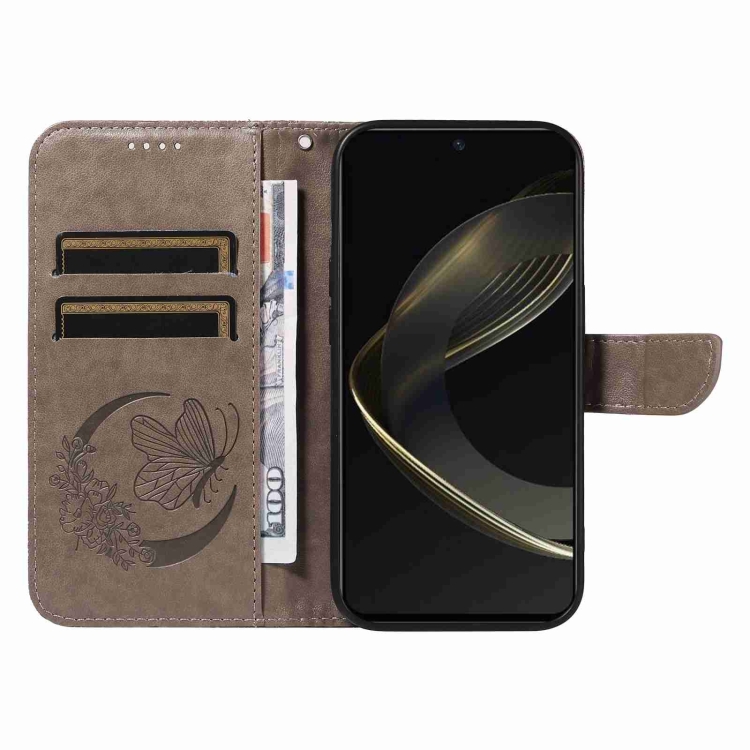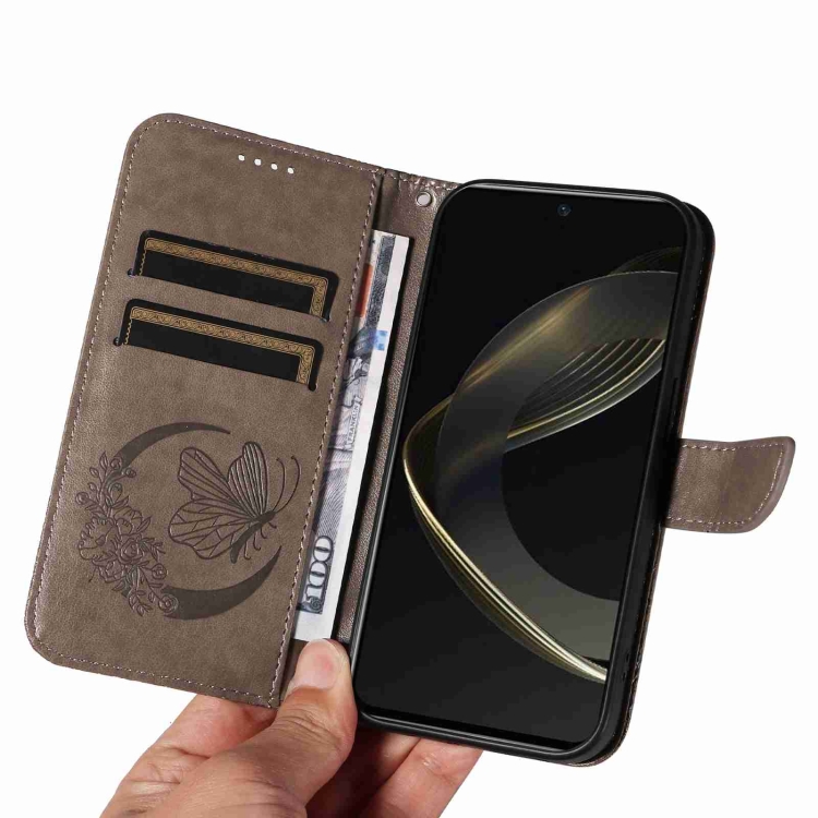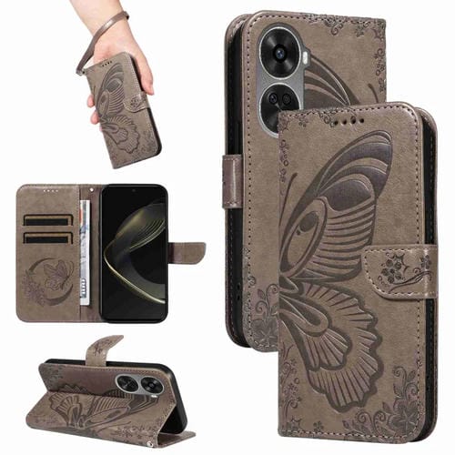 - 1x Funda para Huawei Nova 11 Se 4G de Cuero con Relieve Mariposa y Cola de Golondrina (Gris)