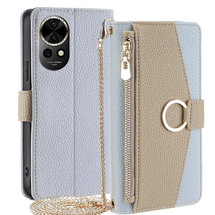 Funda Cruzada de Cuero con Textura Litchi para Huawei Nova 12 5G (Azul)