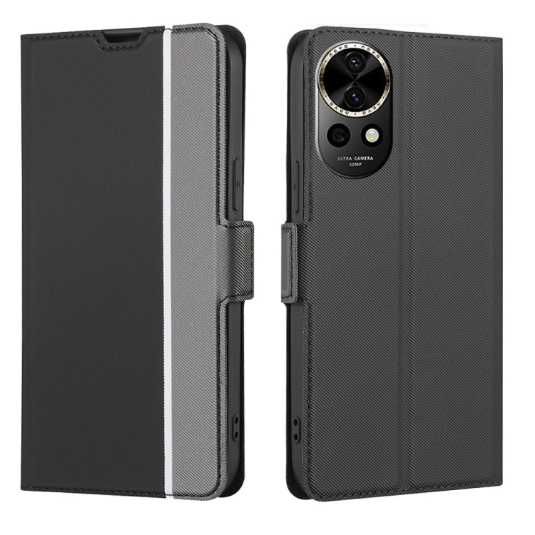 Funda de Cuero para Huawei Nova 12 5G con Botón Lateral y Textura de Sarga (Negro)
