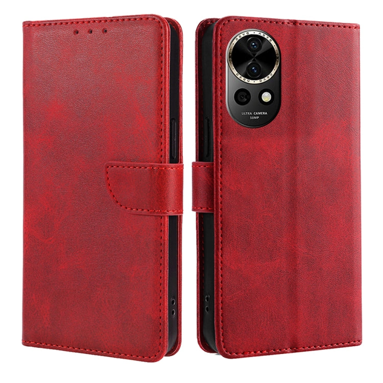 Funda para Huawei Nova 12 5G de Cuero con Tapa, Hebilla y Textura de Becerro (Rojo)