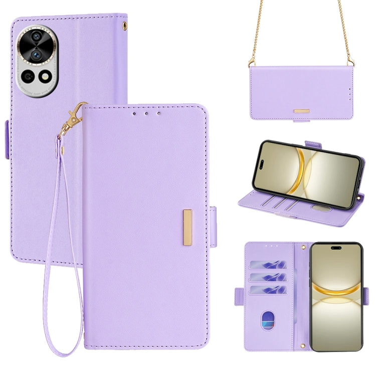 Funda de Cuero con Cadena Cruzada para Huawei Nova 12 Pro / 12 Ultra (Púrpura)