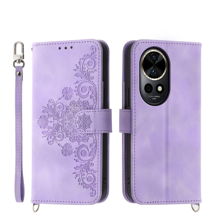 Funda de Cuero para Huawei Nova 12 Pro con Billetera en Relieve y Flores (Púrpura)