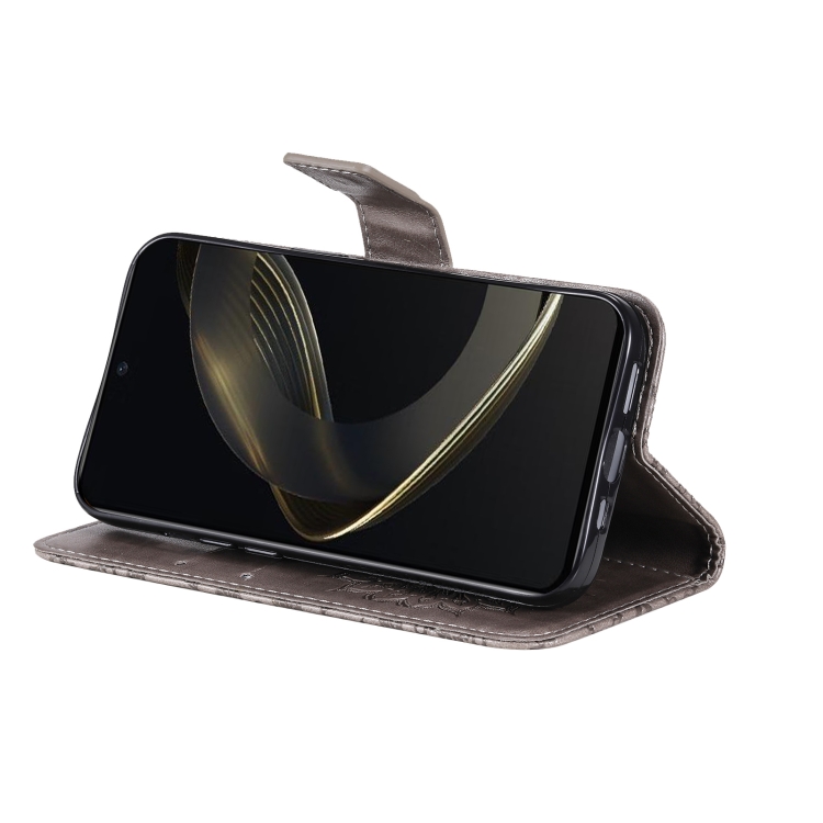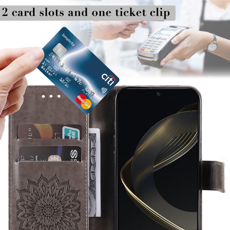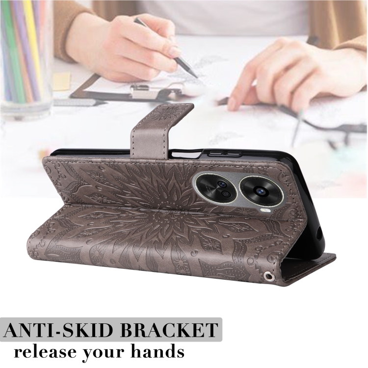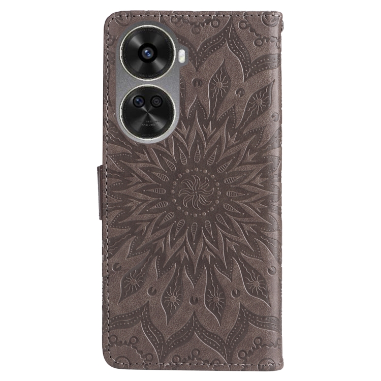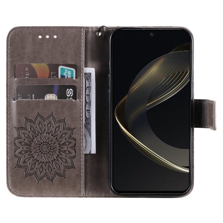 - 1x Funda para Huawei Nova 12 Se y Nova 11 Se de Cuero con Tapa y Patrón de Girasol en Relieve (Gris)