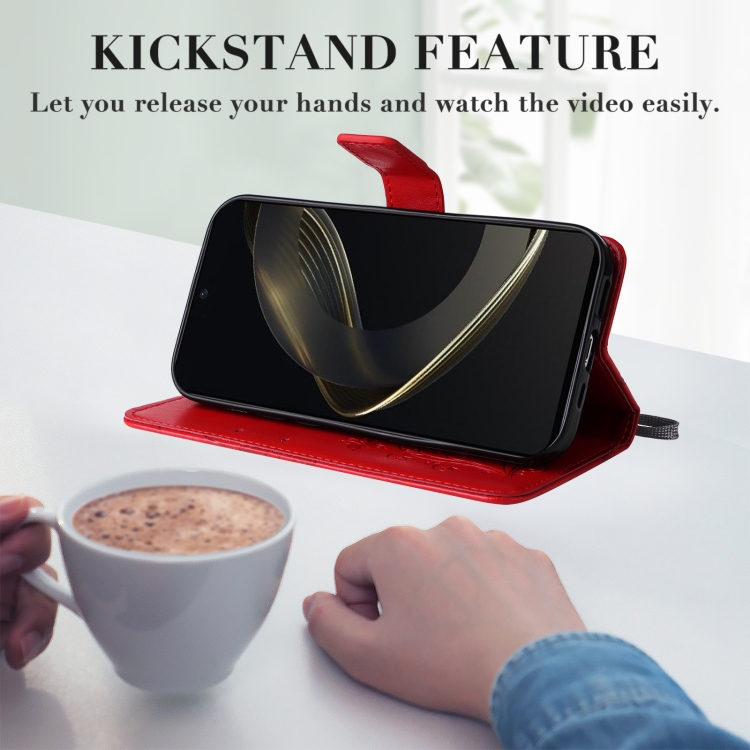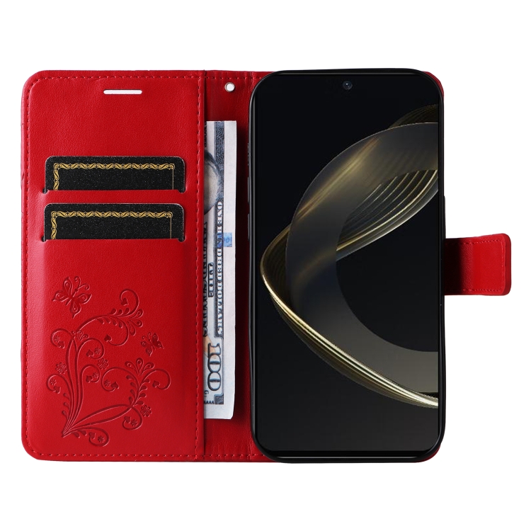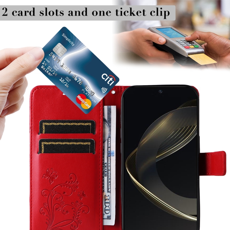 - 1x Funda para Huawei Nova 12 Se y Nova 11 Se de Cuero con Tapa y Patrón Mariposa 3D (Rojo)