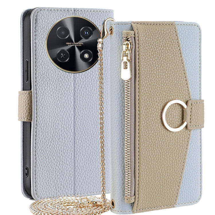 Funda Cruzada de Cuero con Textura Litchi para Huawei Nova 12I 4G (Azul)