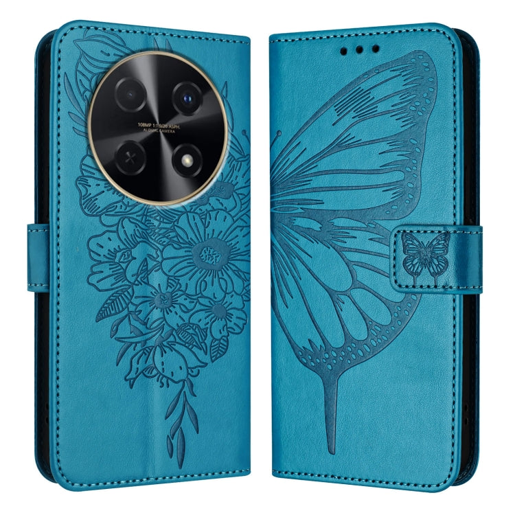 Funda de Cuero para Huawei Nova 12I 4G con Mariposa en Relieve (Azul)