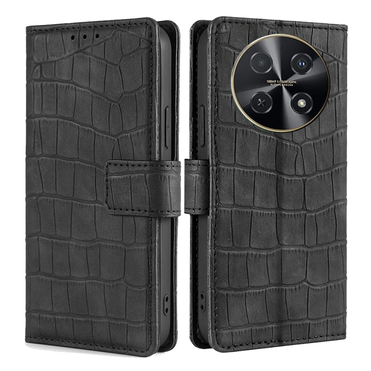 Funda para Huawei Nova 12I 4G de Cuero con Cierre Magnético y Piel de Cocodrilo (Negro)
