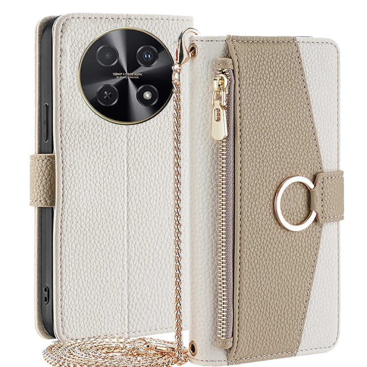 Funda para Huawei Nova 12I 4G de Cuero con Textura Litchi Cruzada (Blanco)