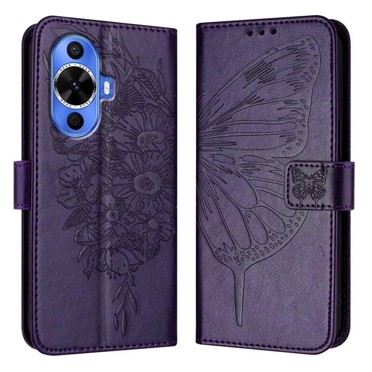 Funda de Cuero para Huawei Nova 12S 4G con Mariposa en Relieve (Púrpura Oscuro)